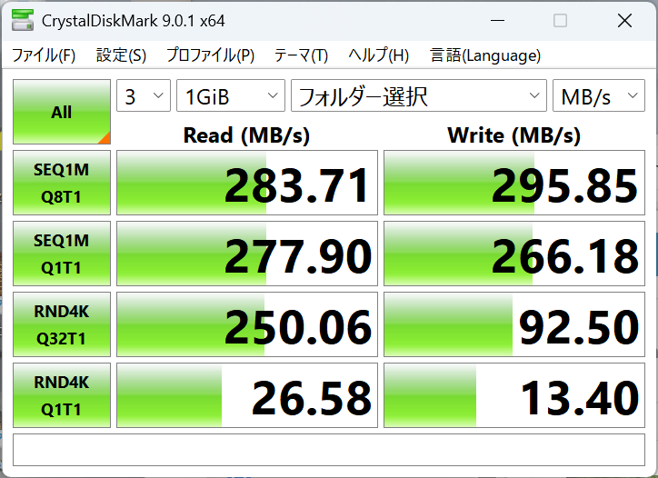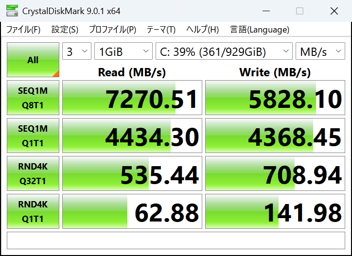 ちなみにPCのCドライブを測定するとこんな感じになる。