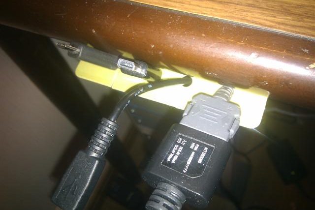 PCとのデータ通信や充電のためにUSBケーブルがたくさん必要です。これを扱いやすくするためにちょっとした工夫をしています。 使う物: ・要らなくなったプラスチック製の適当な会員カー …